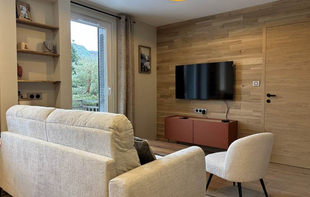 Appartement très séduisant pour 5 personnes, situé au premier étage d'une résidence à proximité du cœur du village de Villard-de-Lans. Il allie confort haut de gamme, décoration soignée et ambiance montagne chic.