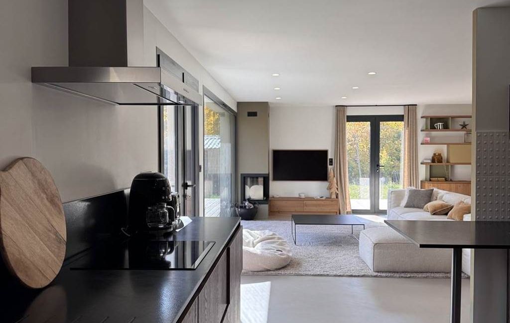 - Très belle pièce de vie avec cuisine aménagée ouverte sur le séjour doté d'un poêle à bois. La pièce ayant accès à la terrasse et au jardin exposé Sud-Est.